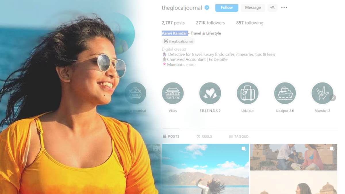 மும்பையை சேர்ந்த சிஏ படித்தவர் அன்வி காம்தர். இவருக்கு டிராவல் என்றால் ரொம்பவே பிடிக்குமாம். அடிக்கடி வெளியில் நண்பர்களுடன் ட்ரிப் அடிப்பதை வழக்கமாக வைத்து இருந்தார். இன்ஸ்டா வளர்ச்சிக்கு பின்னர் அதை வீடியோவாக எடுத்து தன்னுடைய கணக்கில் போட்டு வந்தார். டிராவல் டிப்ஸும் வழங்கினார்.